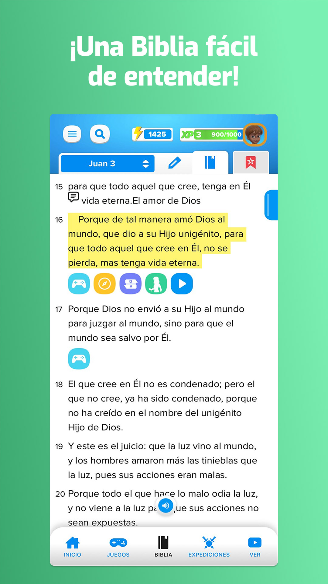 CONTENIDO DINÁMICO DE LA BIBLIA- • Videos y contenido interactivo incorporado a la Biblia para que los niños puedan interactuar fácilmente con cada capítulo de la Biblia para niños.